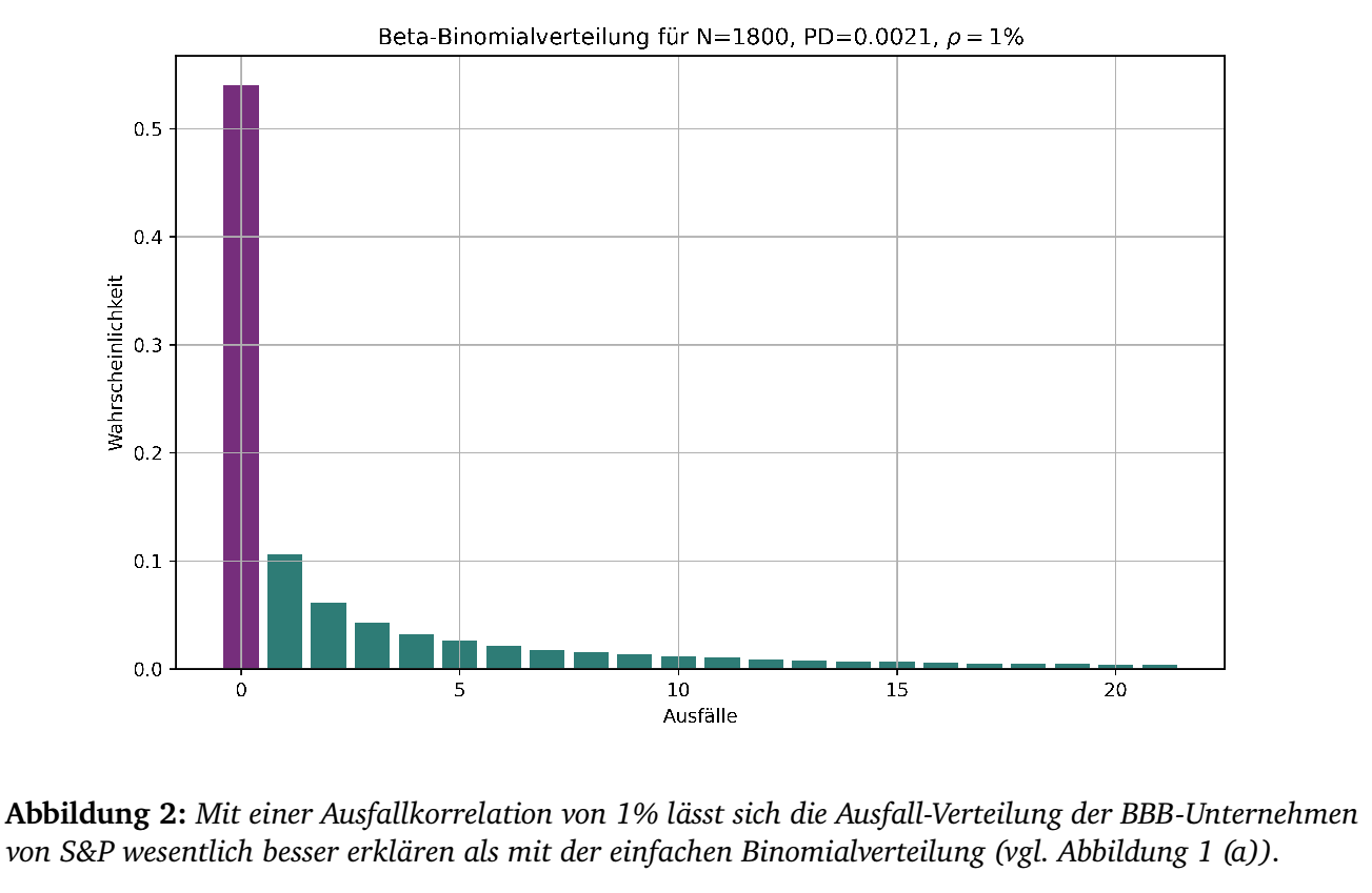 \end{array}\right)\] berechnet sich die Defaultkorrelation \(\rho\) zu \[\rho