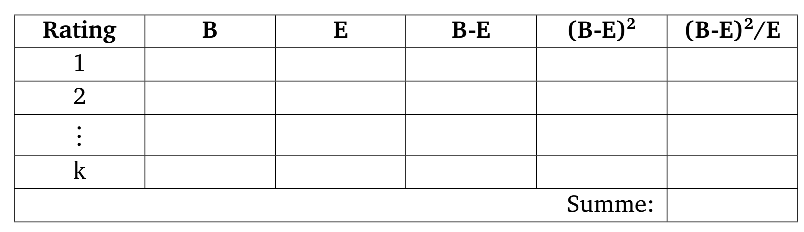 als man zufällig erwarten würde. Hierzu wird die Teststatistik \(\tilde{T}=\sum_{i=1}^k (B_i-E_i)^2/E_i\)