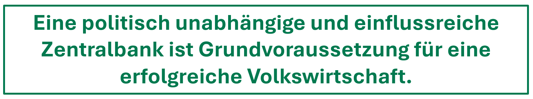 Die Situationen von Ländern wie Argentien oder der Türkei zeigen, wie wichtig eine funktionierende Zentralbank ist. Leider kommt in der wirtschaftlichen Ausbildung die Wirkungsweise der Geldsteuerung viel zu kurz. Die große Bedeutung einer Zentralbank wird so in der Bevölkerung kaum erkannt. Nur so ist es zu erklären, dass die Ankündigung von Donald Trump im US-Wahlkampf 2024, sich mehr in die Geldpolitik einzumischen (FAZ-Artikel), so wenig kritische Resonanz in den US-Medien und der US-Bevölkerung fand.